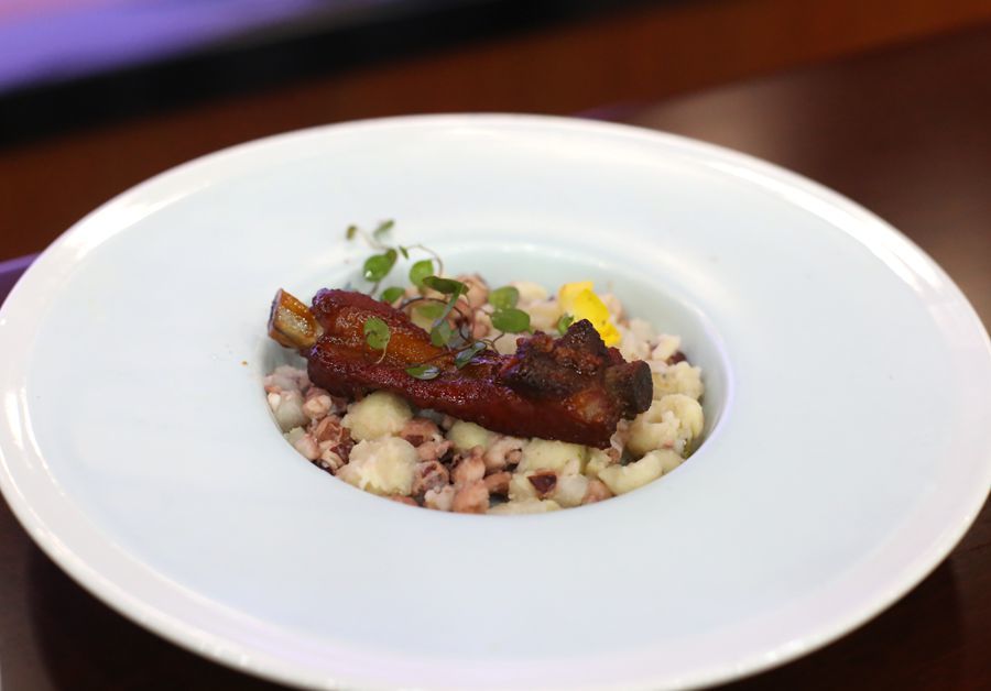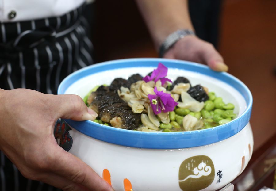比赛现场,各代表队抽取了如“1214岁学生失眠咽干”“2030岁白领女性手脚凉”“2840岁孕中期孕妇水肿”等模拟情景命题,经团队讨论后,快速拟定药膳方案,并现场烹制。不一会儿,“三元滋补丸”“参杞枣梨蒸鸡”“贝母甲鱼汤”“秋葵青皮豆”“虫草花鳕鱼卷”“阿胶照烧猪排炒芡山莲”等色香味俱佳的菜品陆续呈上展台。“贝母甲鱼汤具有滋阴补肺之功效,适宜肺虚人群食用。”“虫草花鳕鱼卷可补肺益肾、健脾和胃,有助增强免疫力,美容养颜。”“阿胶照烧猪排炒芡山莲以阿胶、猪排为主料,辅以芡实、山药、莲子,能健脾养胃、补血安神。”选手们热情介绍各自作品的特色与功效。