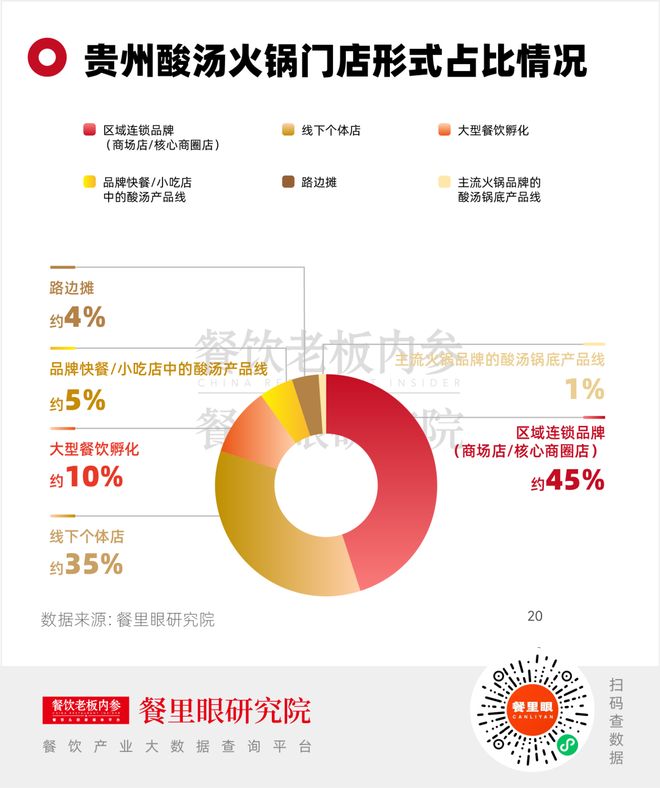 贵州酸汤风味在网络平台迅速传播至全国市场,各地陆续出现贵州酸汤火锅个体店或区域小连锁品牌。这类独立个体餐厅占比大约35%,门店市场分散度高,但更强调正宗贵州酸汤口味。