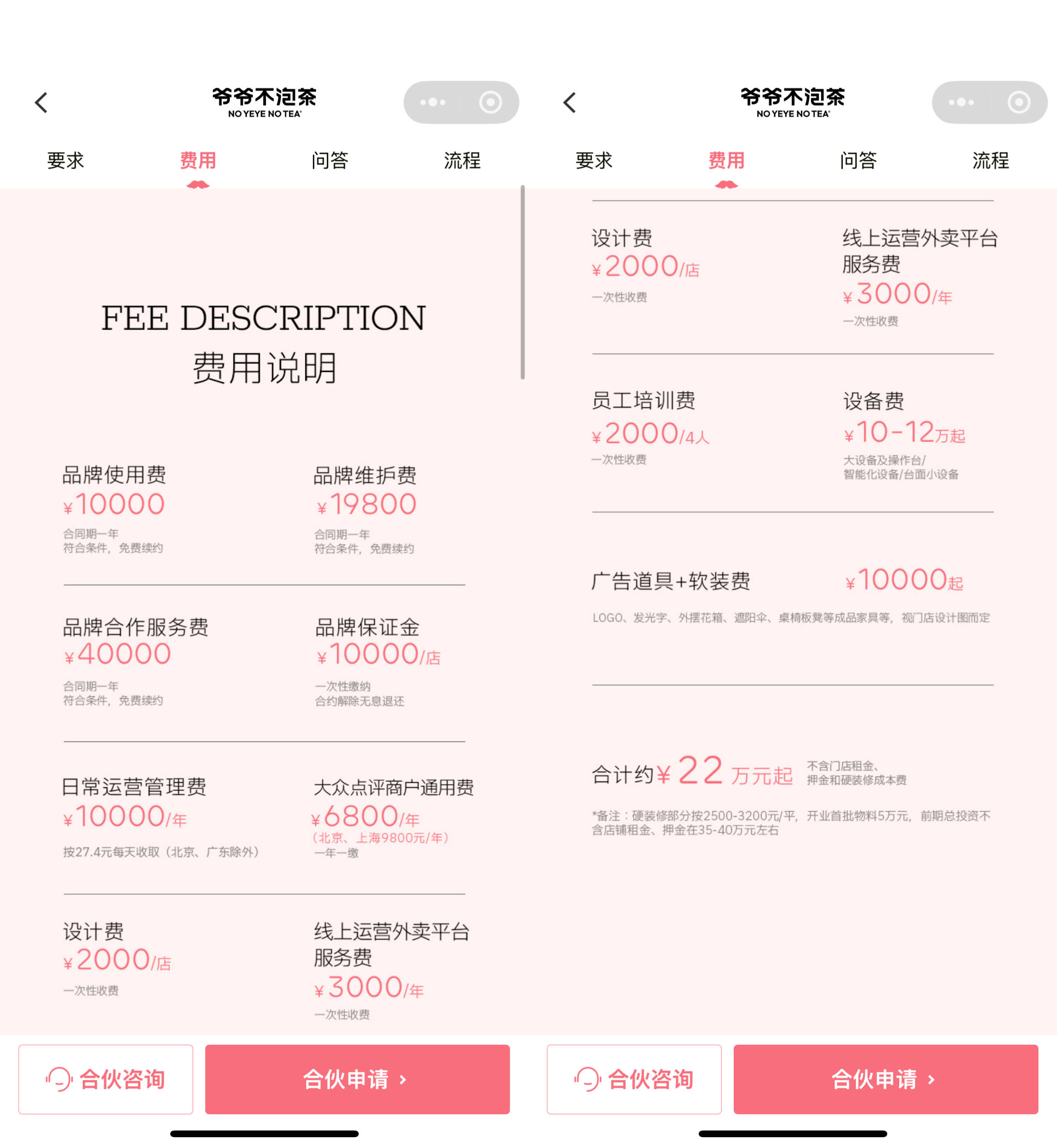 实收率低迷导致收入缩水,成本超预期导致支出增加,一减一增之间,加盟商的利润空间被不断压缩,这也成为爷爷不泡茶扩张模式下最突出的矛盾。