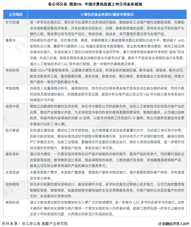 计算机仿真代表性企业在年报中披露其公司战略、经营规划等,其具体业务规划如下: